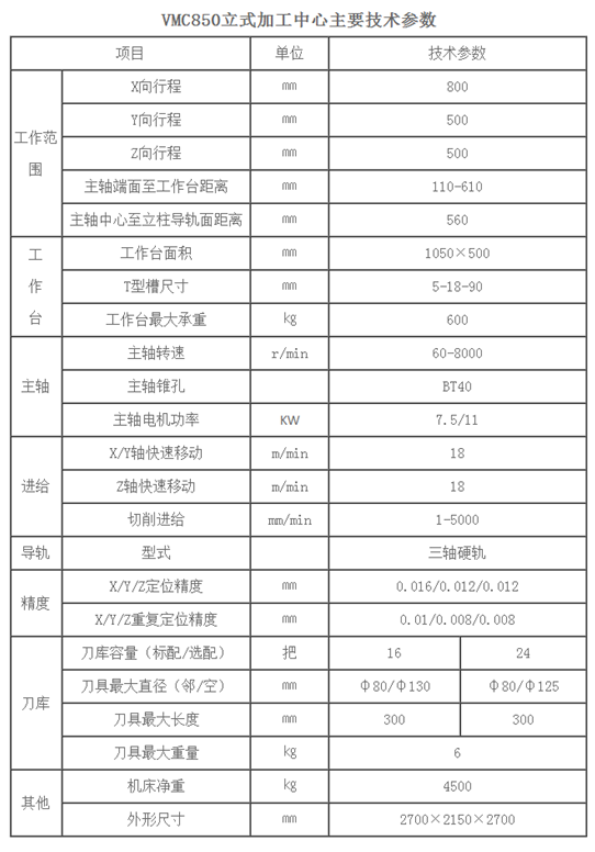 VMC850立式加工中心