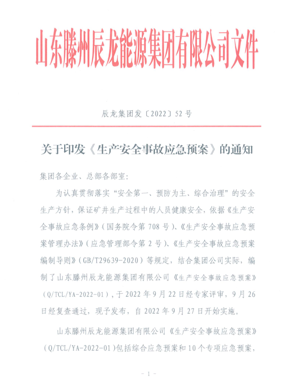 辰龙集团生产安全事故应急预案...